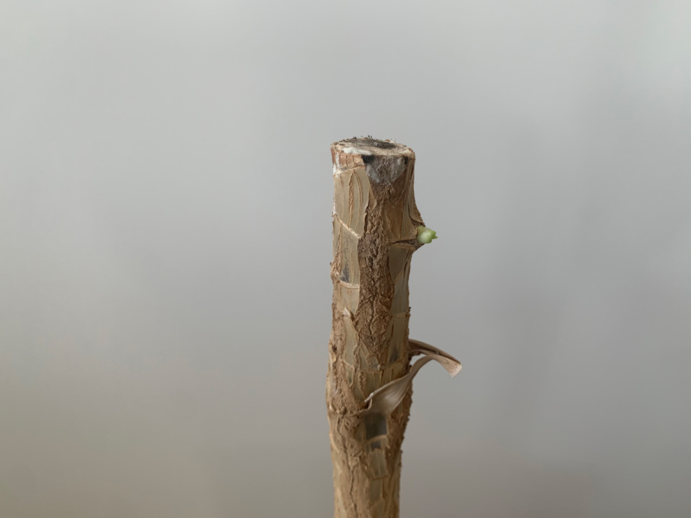 天井まで届いていたものを思い切って剪定しました。よく見ると小さな芽が出てきています。